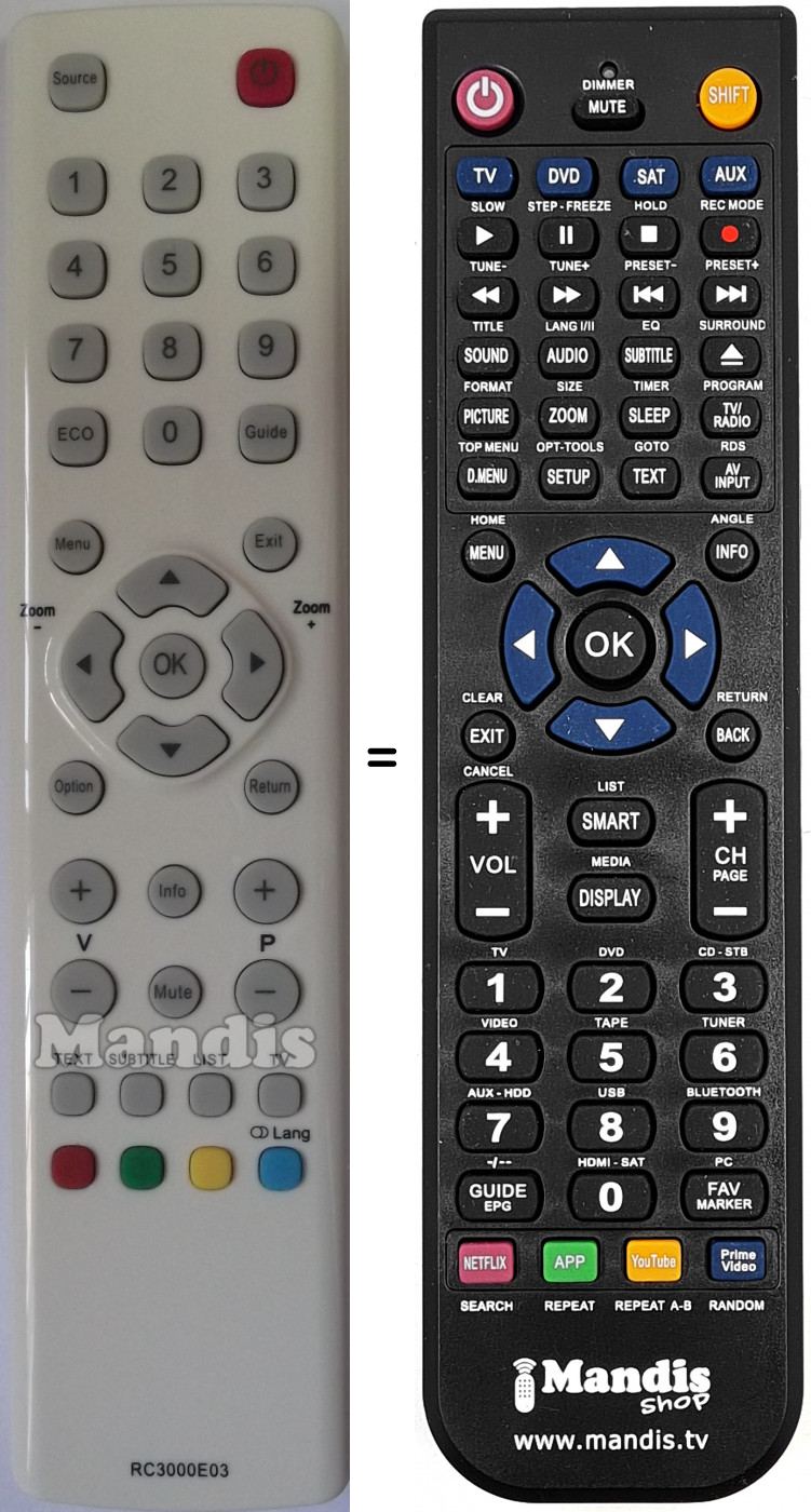 Télécommande qui remplace celle d'origine car elle possède les mêmes fonctions.
