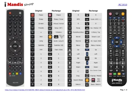 Un document est inclus pour vous aider à utiliser facilement la nouvelle télécommande, en indiquant la correspondance des boutons.