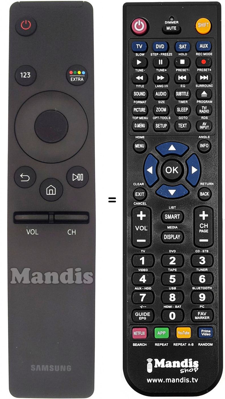 Télécommande qui remplace celle d'origine car elle possède les mêmes fonctions.