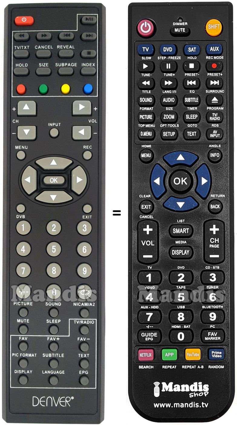 Cette télécommande est adaptée pour différentes marques: Denver, Tokai