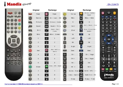 Cette télécommande remplace entièrement votre EN21647S et offre toutes les fonctions de l'originale.