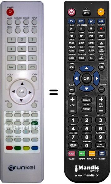 Télécommande qui remplace celle d'origine car elle possède les mêmes fonctions. Il ne s'agit pas d'une télécommande universelle mais d'une télécommande qui remplace celle d'origine. Vous recevrez la télécommande prête à fonctionner, vous n'aurez qu'à mettre les piles. Il n'est pas nécessaire de la programmer. Nous vous garantissons que la télécommande aura exactement les mêmes fonctions que celle d'origine.