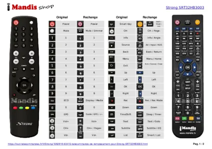 Un document est inclus pour vous aider à utiliser facilement la nouvelle télécommande, en indiquant la correspondance des boutons.