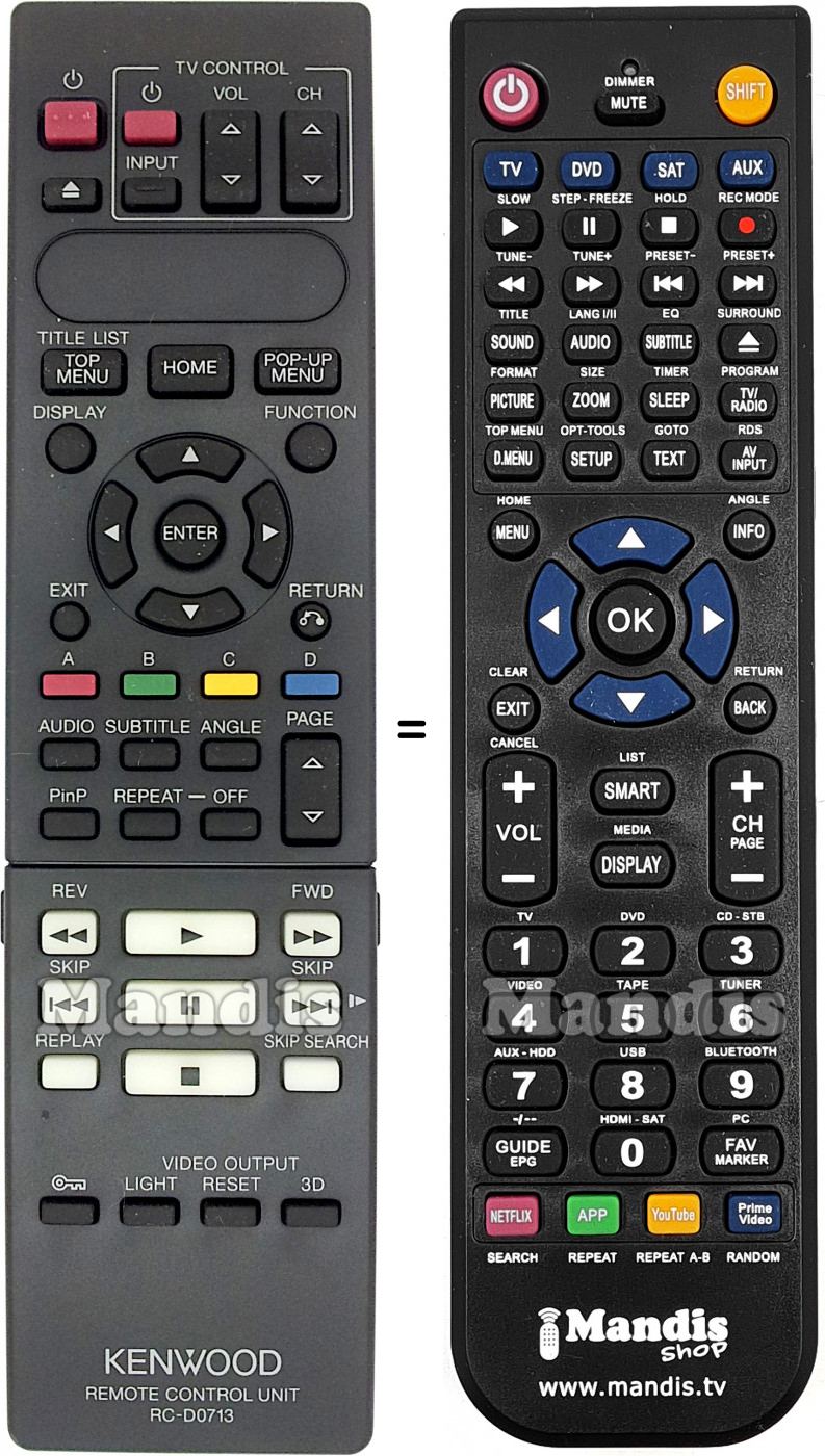 Cette télécommande remplace entièrement votre RC-D0713 et offre toutes les fonctions de l'originale.