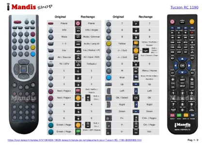 Cette télécommande remplace entièrement votre RC1190S et offre toutes les fonctions de l'originale.
