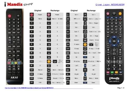Un document est inclus pour vous aider à utiliser facilement la nouvelle télécommande, en indiquant la correspondance des boutons.