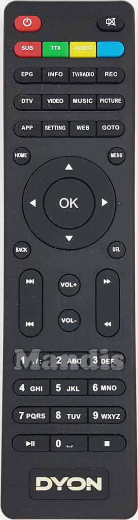 Accueil > Marques > Télécommande pour DYON001 > Répartition interactive des touches DYON001