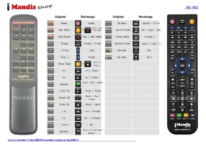 Accueil > Marques > Télécommande pour RB-MS3 > Répartition interactive des touches RB-MS3