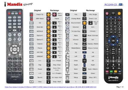 Accueil > Marques > Télécommande pour RC1249 > Répartition interactive des touches RC1249