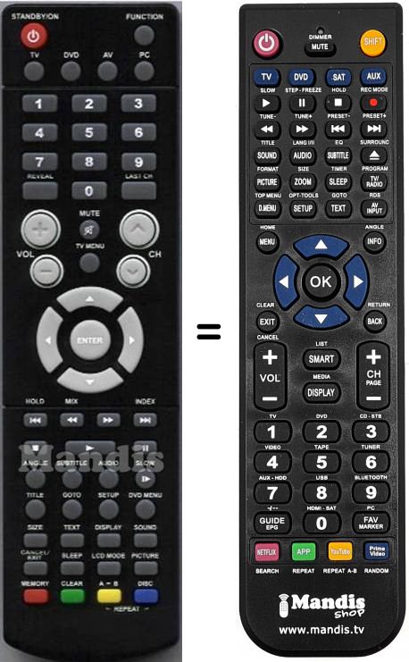 Télécommande qui remplace la télécommande d'origine RCALD192200 car elle possède les mêmes fonctions.
