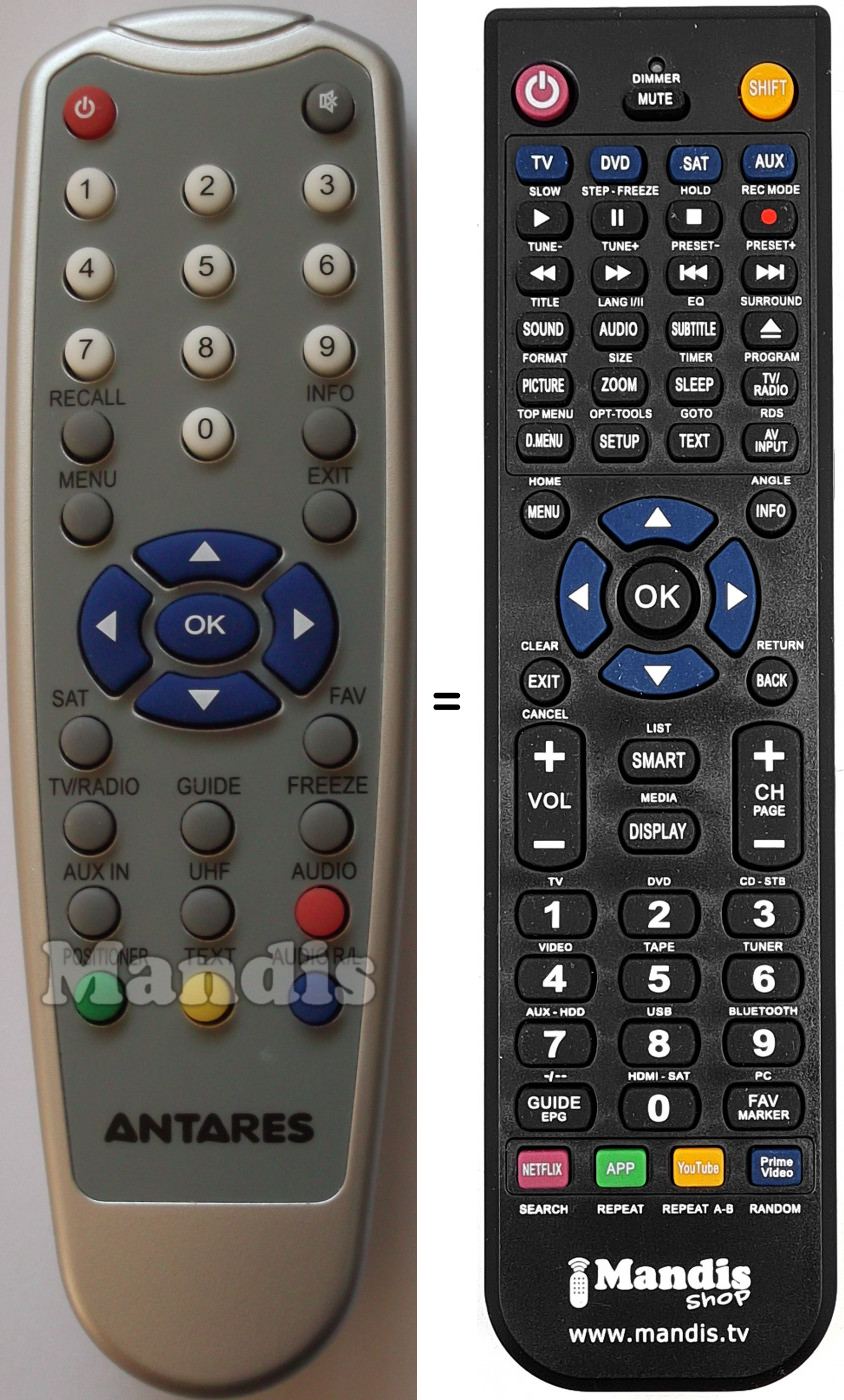 Télécommande qui remplace celle d'origine car elle possède les mêmes fonctions.