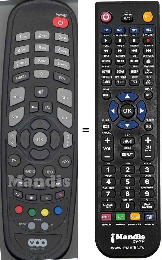Télécommande qui remplace celle d'origine car elle possède les mêmes fonctions.