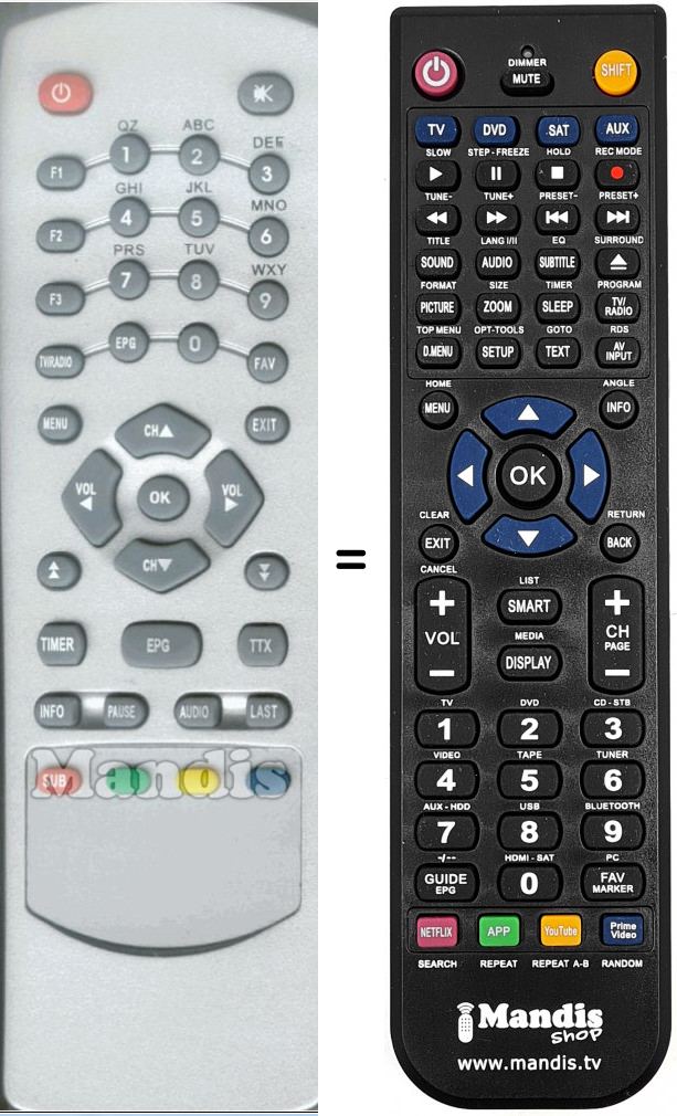 Télécommande qui remplace celle d'origine car elle possède les mêmes fonctions.