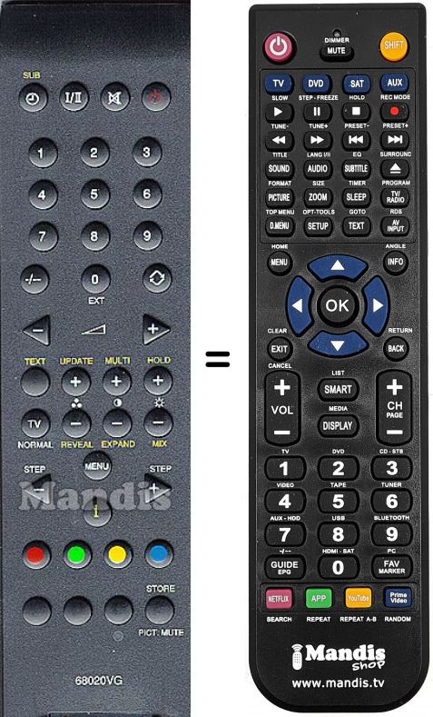 Il ne s'agit pas d'une télécommande universelle mais d'une télécommande qui remplace celle d'origine.