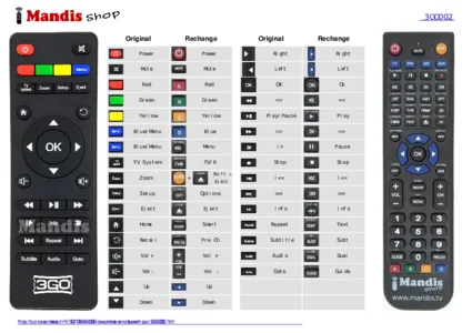 Cette télécommande remplace entièrement votre 3GO002 et offre toutes les fonctions de l'originale.