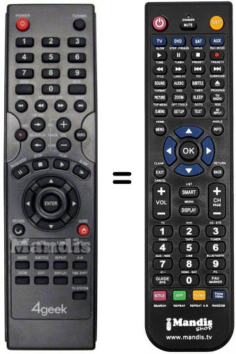 Télécommande qui remplace celle d'origine car elle possède les mêmes fonctions.