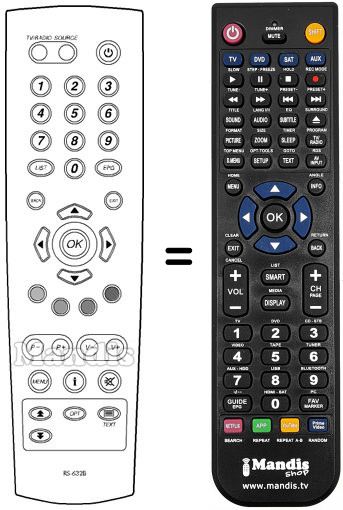 Télécommande qui remplace celle d'origine car elle possède les mêmes fonctions.