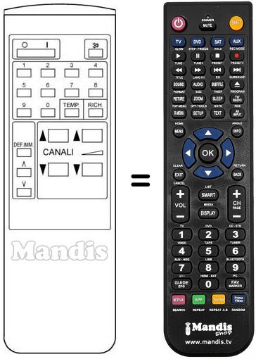 Télécommande qui remplace celle d'origine car elle possède les mêmes fonctions.