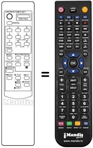 Télécommande qui remplace celle d'origine car elle possède les mêmes fonctions.
