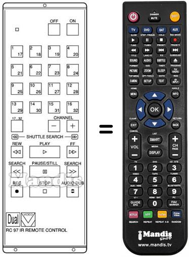 Télécommande qui remplace celle d'origine car elle possède les mêmes fonctions.