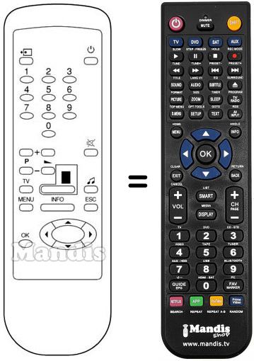 Télécommande qui remplace celle d'origine car elle possède les mêmes fonctions.
