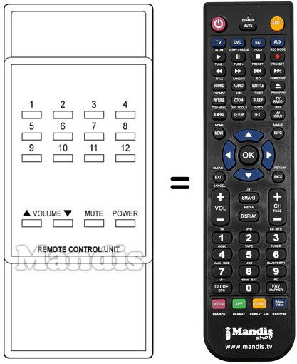 Télécommande qui remplace celle d'origine car elle possède les mêmes fonctions.