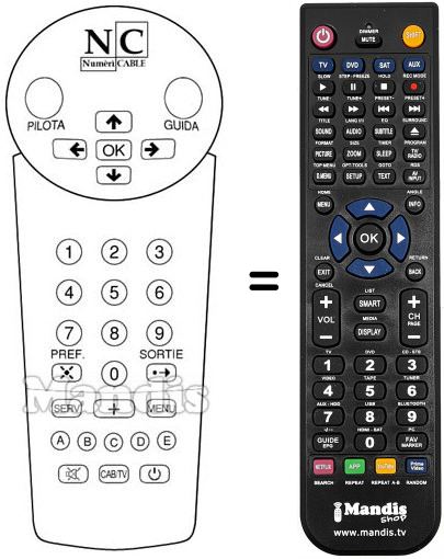Télécommande qui remplace celle d'origine car elle possède les mêmes fonctions.