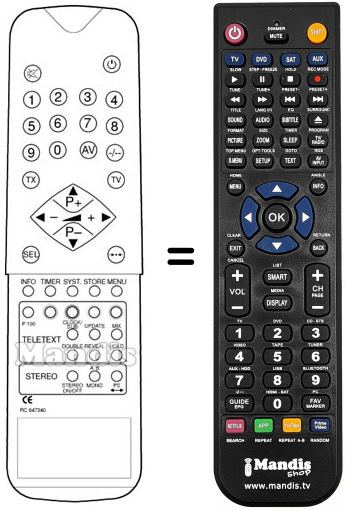 Télécommande qui remplace celle d'origine car elle possède les mêmes fonctions.