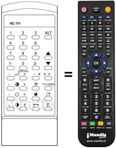 Télécommande qui remplace celle d'origine car elle possède les mêmes fonctions.