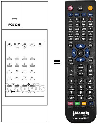 Télécommande qui remplace celle d'origine car elle possède les mêmes fonctions.