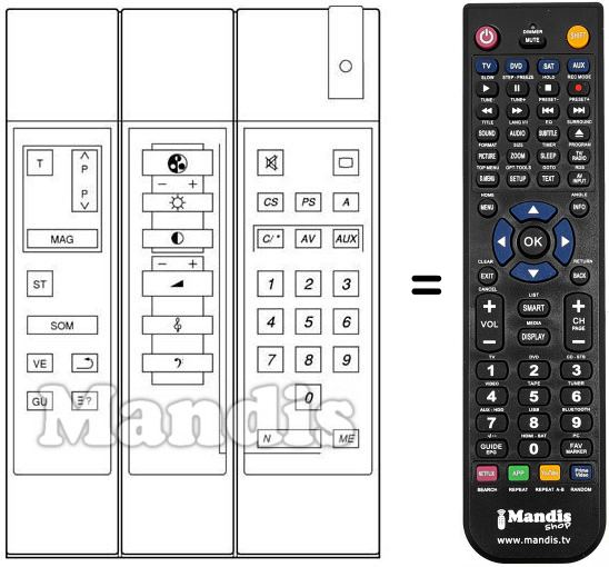 Télécommande qui remplace celle d'origine car elle possède les mêmes fonctions.