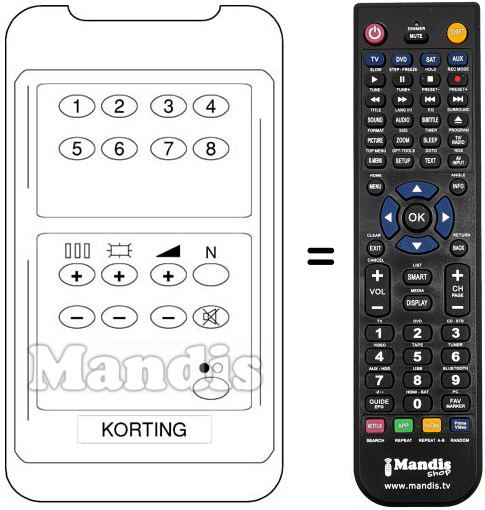 Télécommande qui remplace celle d'origine car elle possède les mêmes fonctions.