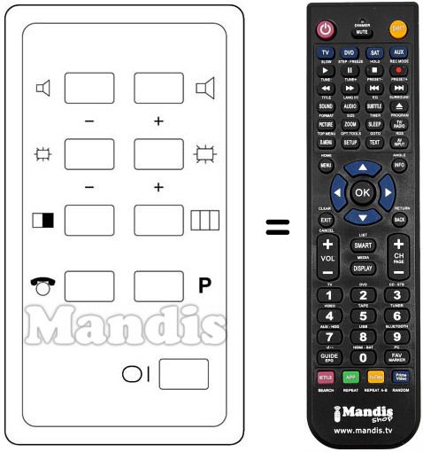 Télécommande qui remplace celle d'origine car elle possède les mêmes fonctions.