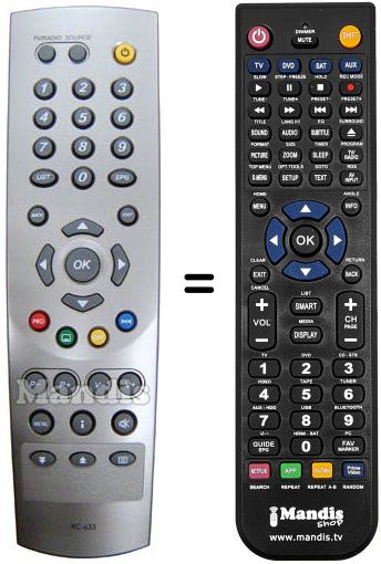 Télécommande qui remplace celle d'origine car elle possède les mêmes fonctions.