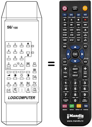 Télécommande qui remplace celle d'origine car elle possède les mêmes fonctions.