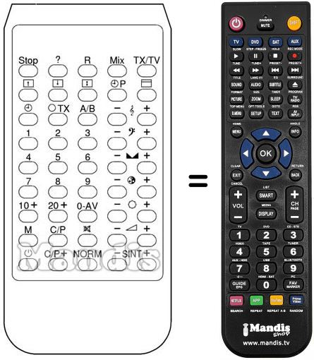 Télécommande qui remplace celle d'origine car elle possède les mêmes fonctions.