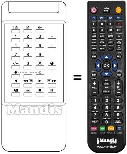 Télécommande qui remplace celle d'origine car elle possède les mêmes fonctions.
