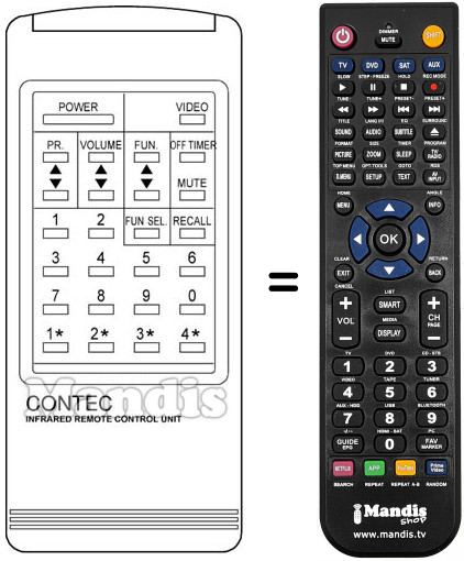 Télécommande qui remplace celle d'origine car elle possède les mêmes fonctions.