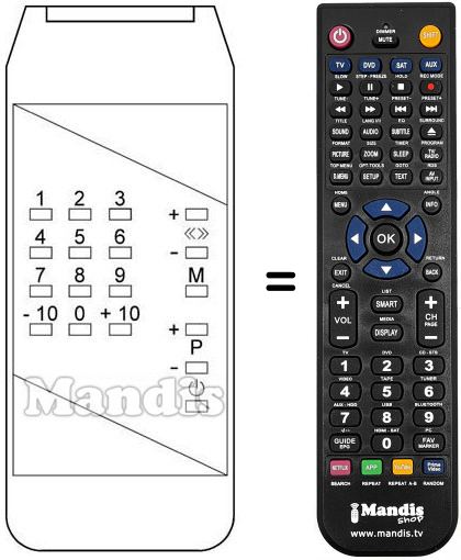 Télécommande qui remplace celle d'origine car elle possède les mêmes fonctions.