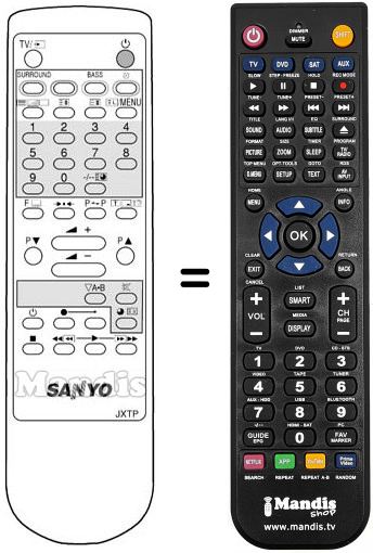 Télécommande qui remplace celle d'origine car elle possède les mêmes fonctions.