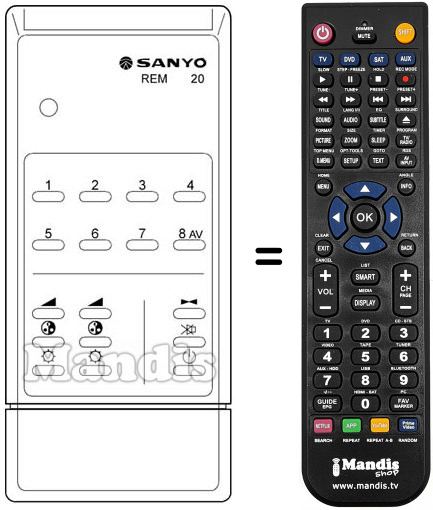 Télécommande qui remplace celle d'origine car elle possède les mêmes fonctions.
