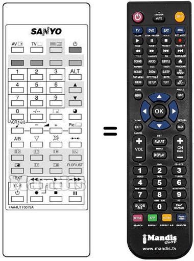Télécommande qui remplace celle d'origine car elle possède les mêmes fonctions.