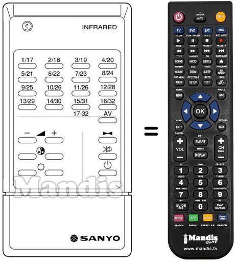 Télécommande qui remplace celle d'origine car elle possède les mêmes fonctions.