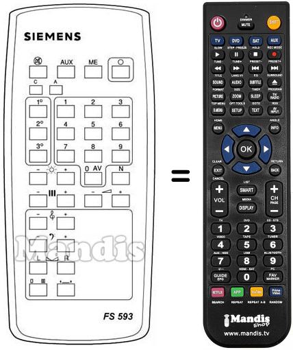 Télécommande qui remplace celle d'origine car elle possède les mêmes fonctions.