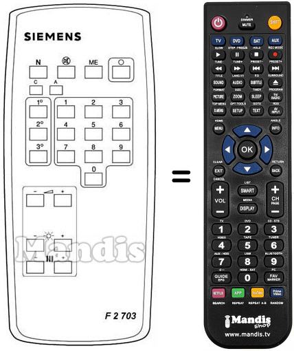 Télécommande qui remplace celle d'origine car elle possède les mêmes fonctions.