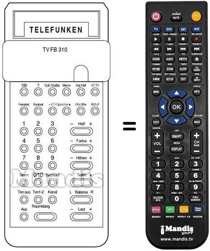 Télécommande qui remplace celle d'origine car elle possède les mêmes fonctions.