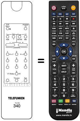Télécommande qui remplace celle d'origine car elle possède les mêmes fonctions.