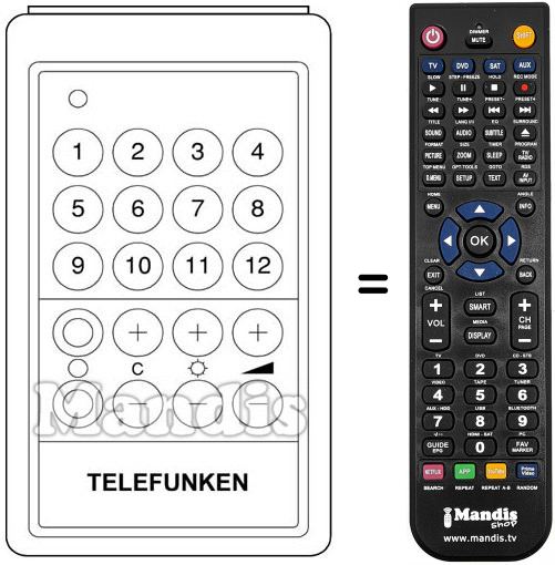 Télécommande qui remplace celle d'origine car elle possède les mêmes fonctions.