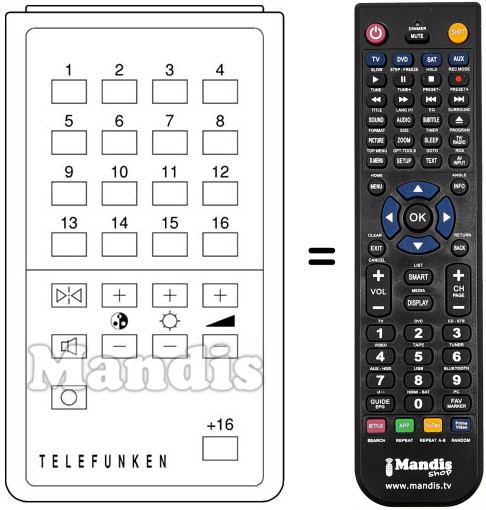 Télécommande qui remplace celle d'origine car elle possède les mêmes fonctions.