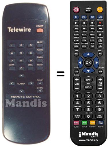 Télécommande qui remplace celle d'origine car elle possède les mêmes fonctions.